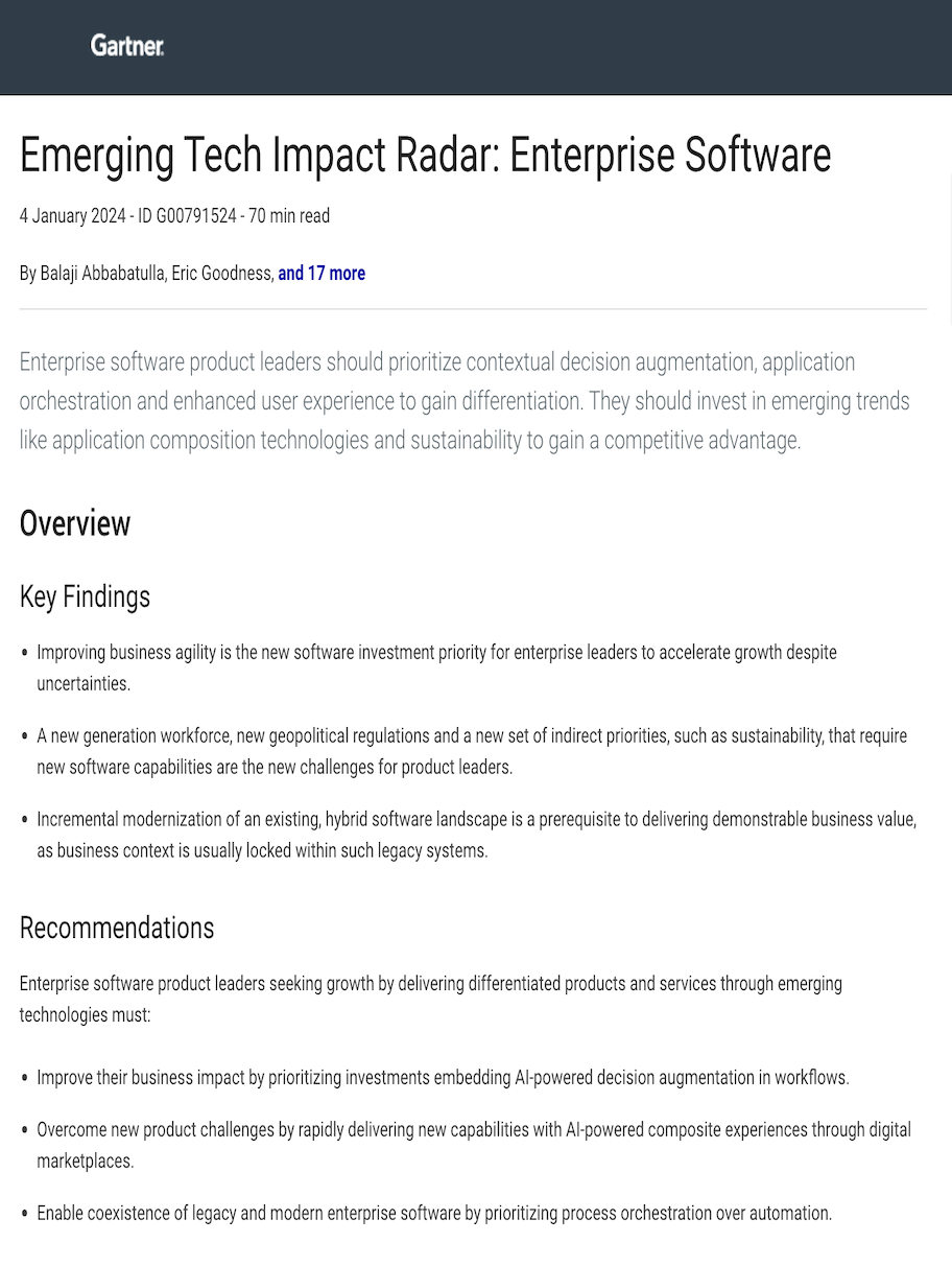 Emerging Tech Impact Radar: Enterprise Software, 2024, Balaji Abbabatulla, Eric Goodness, and 17 more, 4 January 2024